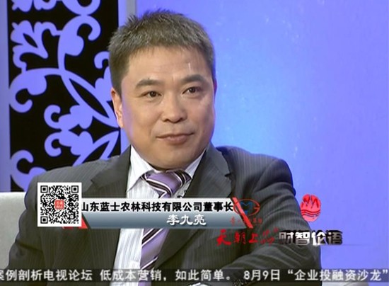 山东蓝士农林科技有限公司董事长李九亮做客CCTV《财智论语》节目 CCTV《财智论语》栏目组邀请到了山东蓝士农林科技有限公司 董事长李九亮,央视著名主持人阿丘担任主持,分享了李总的创业故事和企业使命。 山东蓝士农林科技有限公司作为一家专业生产和销售保水剂产品的高新技术企业,创立于2008年,致力于开发世界上最领先的保水剂节水技术,从而提高干旱地区农业生产力,改造和恢复生态环境。公司产品已获得两项国家发明专利,“国家级星火计划项目证书”,“国家级火炬计划项目证书”和科技部颁发的“科技型中小企业创新基金立项证书”。山东蓝士经过上百次试验和技术改良,实现了具有世界领先水平的生化营养保水剂的产业化,使我国日益严重的沙漠化、荒漠化土地看到了更美好的希望选择。 节目中,李九亮讲述了他与保水剂的不解之缘。原先在石化企业有着令人羡慕的铁饭碗工作,一个偶然的机会使他接触到保水剂这个项目,作为农民的孩子使他很早的时候就想做一些对农民有贡献的事情,所以在短短15分钟的时间就下定决心并参与到保水剂的研发。起初他都没有想过赚钱的事情,强烈的社会责任感让他全身心的投入其中,最困难的时候只能吃馒头度日,可是他说:“选择保水剂项目就是为了坚守治理干旱的梦想,为农民解决实际问题,虽然这条路上会有很多艰苦和困难,但是一切都是值得的”。期间,李总淳朴真实的话语感染着主持人,也感动了台下的观众。 衷心祝愿李九亮的智慧和精神带领着山东蓝士为“创蓝天碧水,铸环保卫士”的企业目标奋勇迈进,同时也希望民营科技企业能得到社会各界更多的支持和帮助。