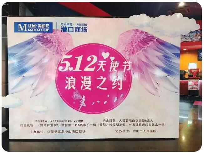 当我们赞扬白衣天使们的守护精神的时候 有没有想过 我们的天使谁来守护? 5.12国际护士节 红星美凯龙中山港口商场 为市人民医院的白衣天使们 制造了一场浪漫电影约会 一起守护天使 浪漫之约 5月12日,红星美凯龙中山港口商场向市人民医院的白衣天使及其家人发出甜蜜邀约,包场邀请大家一起看电影《银河护卫队2》,并早早布置好现场,买好观影爆米花等候天使们到来。 天使驾到 市人民医院近300名白衣天使及其家人 甜蜜赴约 您们是我们心中最美的天使 可爱的小天使们 强大的天使护卫队 银河护卫队的队员们冲破万难誓死捍卫地球 而我们的白衣天使们 不分昼夜,坚守最前线 守候一个又一个生命 你们也是我们生活中 不可或缺的护卫队 天使特权,专属VIP服务 看完电影,还有更多福利等着你喔 福利一 活动时间:2017年4月28日--2017年6月28日 活动服务项目: 1、门的五金调试、清洁保养 2、厨柜五金件调试、维护、清洁跟保养 3、抛光砖污垢清洁、砖面划痕修复、晾晒 4、淋浴房坡璃表面的污渍清理、配件的调试 5、地板打蜡 6、水质检测、净水机免费试用15天 7、硅藻泥保养 8、集成吊顶清洁维护 9、卫浴清洁除垢 10、电器清洁 11、床垫除尘除螨 12、皮质沙发打蜡、沙发清洁护理 13、实木修补打蜡 福利二 >>专享家装补贴绿色通道 >>医护人员的专场超值内购会 >>“星易·家居贷”,超低利息分期付款 福利详情请咨询 红星美凯龙中山港口商场 咨询热线:0760-88518777 / 0760-88518832