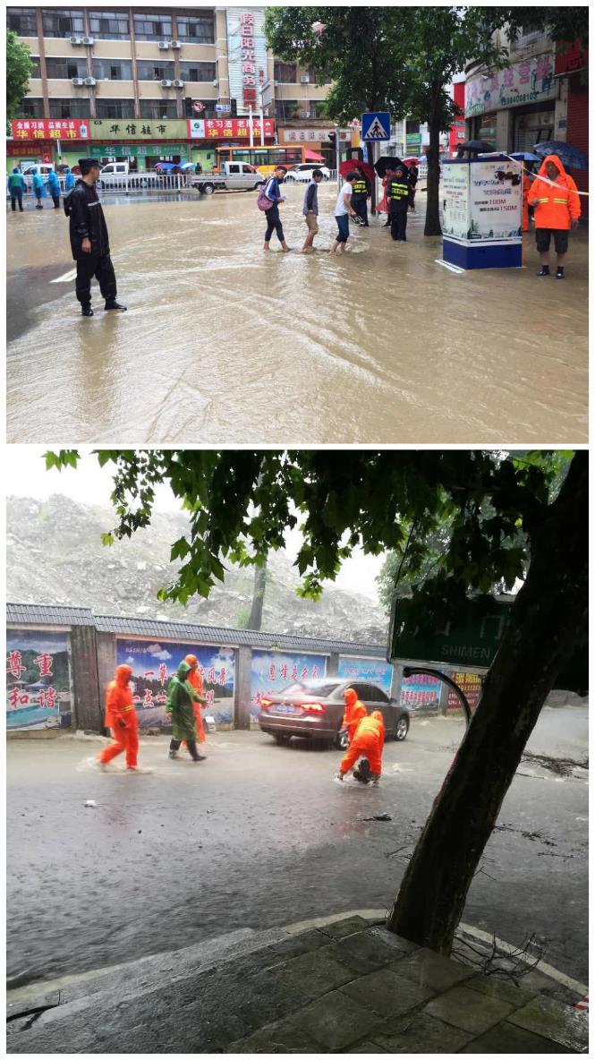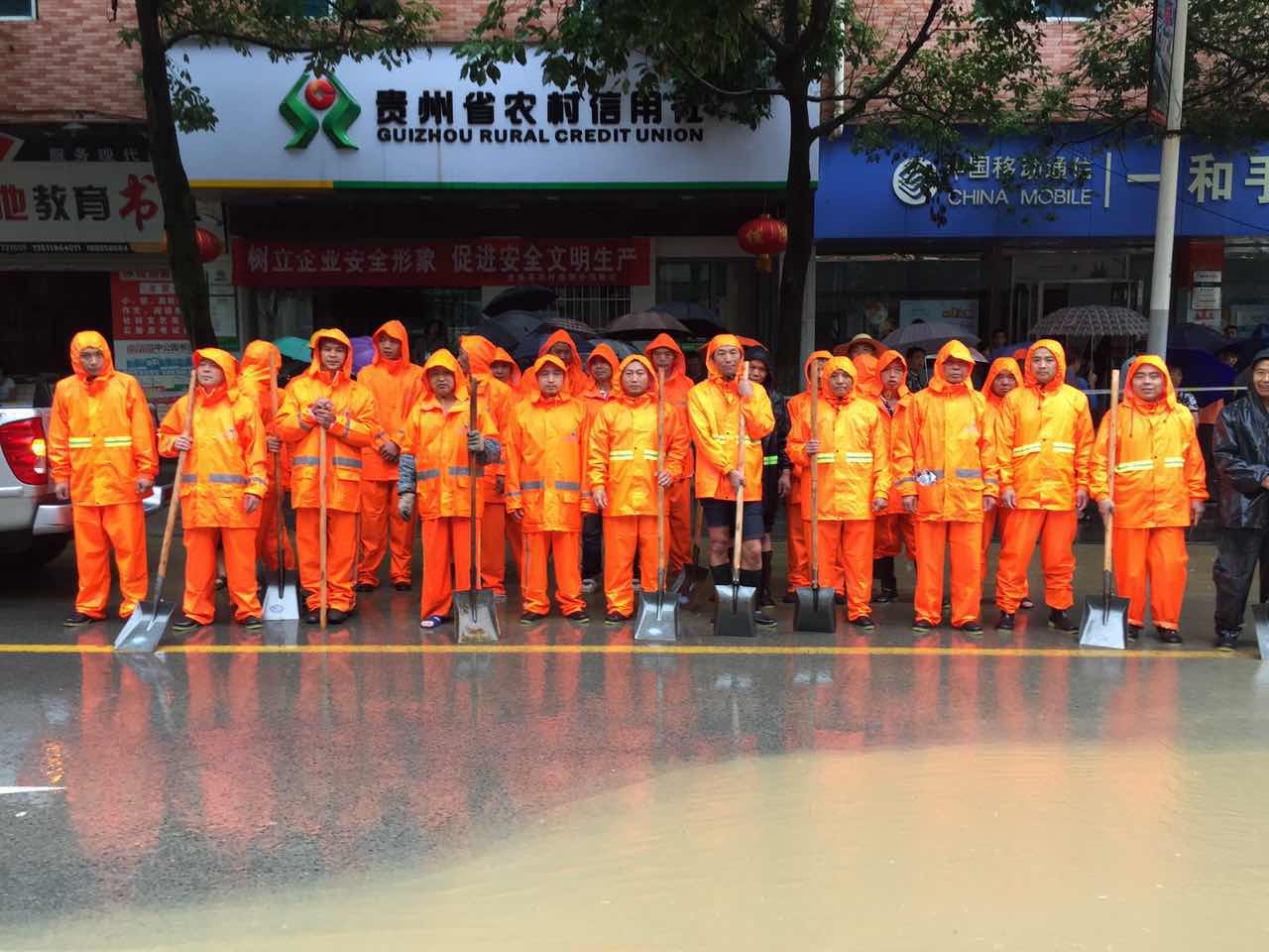 贵州省息烽县逢50年一遇暴雨 侨银环保“小黄人”为市民保驾护航