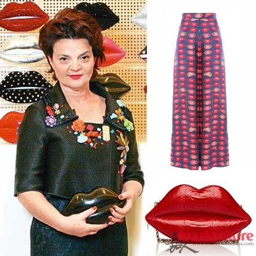 有着“英国手提包女王”之称的Lulu Guinness 当属红唇符号最具代表性的设计师之一。2004年她设计的以蛇皮制造的红唇手包(Lips Clutch)刚好迎合了当时风行的80年代复古风格,因此一经推出便成为好莱坞影星们最钟爱的热门单品。如今红唇手袋已经成为品牌标志单品,有多达三十多款不同的变奏版。