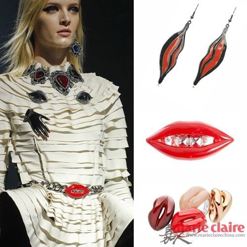 红唇符号的珠宝演绎:Sonia Rykiel红唇耳环(上);Lavin红唇配饰(中);Solange Azagury-Partridge红唇指环(下)