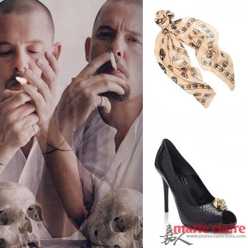 骷髅头真正成为经典的时尚符号,归功于英国设计大师Alexander McQueen。他的设计在天马行空的同时,又具有一种阴郁的浪漫情怀。或许正是出自于对“死亡”的着迷,才使得骷髅头这一元素与他的作品格外契合。当他的骷髅头图案丝巾出现在2003春夏系列作品中时,立刻引起了不小的轰动。