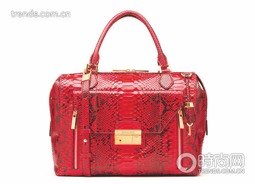 红色是最刺激、最鲜艳,给人印象最强,最显眼的色彩。穿上浓郁的大红色,能衬托出美丽的肌肤。登上红色的高跟鞋,无人能把视线从你的脚上移开。蟒蛇纹手提包 Michael Kors