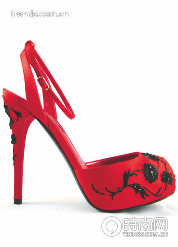 红色是最刺激、最鲜艳,给人印象最强,最显眼的色彩。穿上浓郁的大红色,能衬托出美丽的肌肤。登上红色的高跟鞋,无人能把视线从你的脚上移开。刺绣装饰高跟鞋 Ralph Lauren