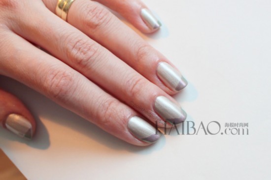 香槟金色法式美甲:接到了时尚晚宴的邀请函不知道如何拗造型怎么办?确定了优雅大方的方向之后,你只需要搭配一款香槟金色的法式美甲造型就足够了,稳妥优雅的色调会突显你的气质,淡紫色的不规则法式描边也增添了俏皮元素。