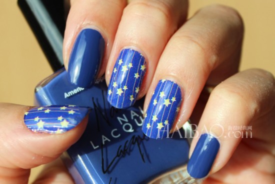 满天星辰星空贴片美甲:蔚蓝的星空带来的浩瀚感受绝对是每个女孩都抵挡不住的,这样的灵感妆点在美甲上是不是很有创意?想要让闺蜜羡慕你的美甲造型,别着急。买来满天星辰般的美甲贴片就能完成你这样的愿望,真的很简单。