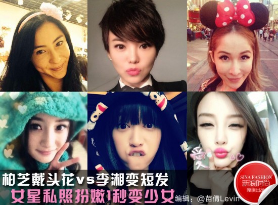 原标题:柏芝戴花vs李湘短发 女星私照扮嫩1秒变少女