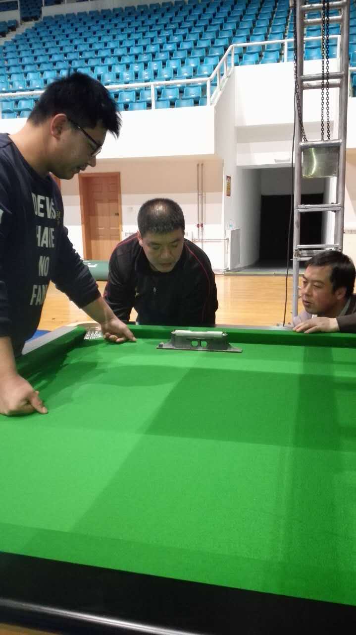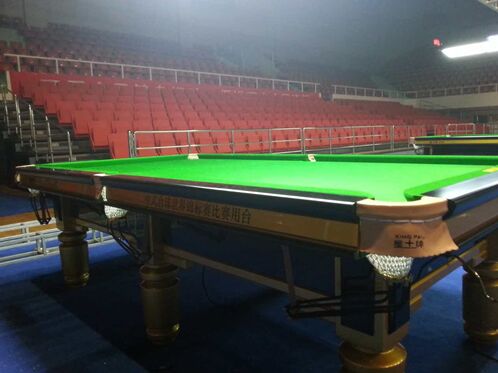 1月23日,2015CBSA“柏阁·星牌”杯中式台球中国精英赛主赛场搭建完毕,本届精英赛比赛用台——星牌“中式台球世界锦标赛比赛用台”业已安装完毕,静待参赛运动员的检阅。 星牌“中式台球世界锦标赛比赛用台”自2015年2月在玉山中式台球世锦赛上亮相以来,就以华美的外形、优良的打感获得了业内各界人士的赞誉。之后,分别成为2015星牌-红牛杯京津冀台球俱乐部联赛、2015星牌中式台球排名赛、2015CBSA中式台球中国公开赛、2015“星牌杯”首都高校大学生台球联赛等比赛的指定用台。无论是主办方还是参赛运动员,亦或是体验过星牌“中式台球世界锦标赛比赛用台”的球迷,都称赞其“打感好”。2015年可谓是星牌“中式台球世界锦标赛比赛用台”收获的一年。 据星牌高级技师谭龙介绍,星牌“中式台球世界锦标赛比赛用台”是集星牌多项专利技术于一体的结晶,其中的多点调平装置、整体钢结构及恒温恒湿系统均是业内最前沿的技术,是球台性能达到最佳的保障,整张球台由375个零部件构成,是体育器材领域里面最精密的器材之一,有点像乐器里面的钢琴。谭龙说:“亮相本届精英赛的这些球台,全部都是专为本次赛事定制的球桌,这几天我们星牌8名技师加班加点工作,每张球台都经过了调平、调整、调校等二十多道安装工序的检验和检测,13张球台已全部安装完毕,保证每一张比赛用台都达到了最佳性能,都能完美展现选手的风采。”
