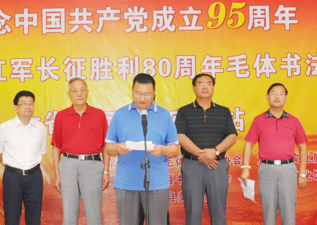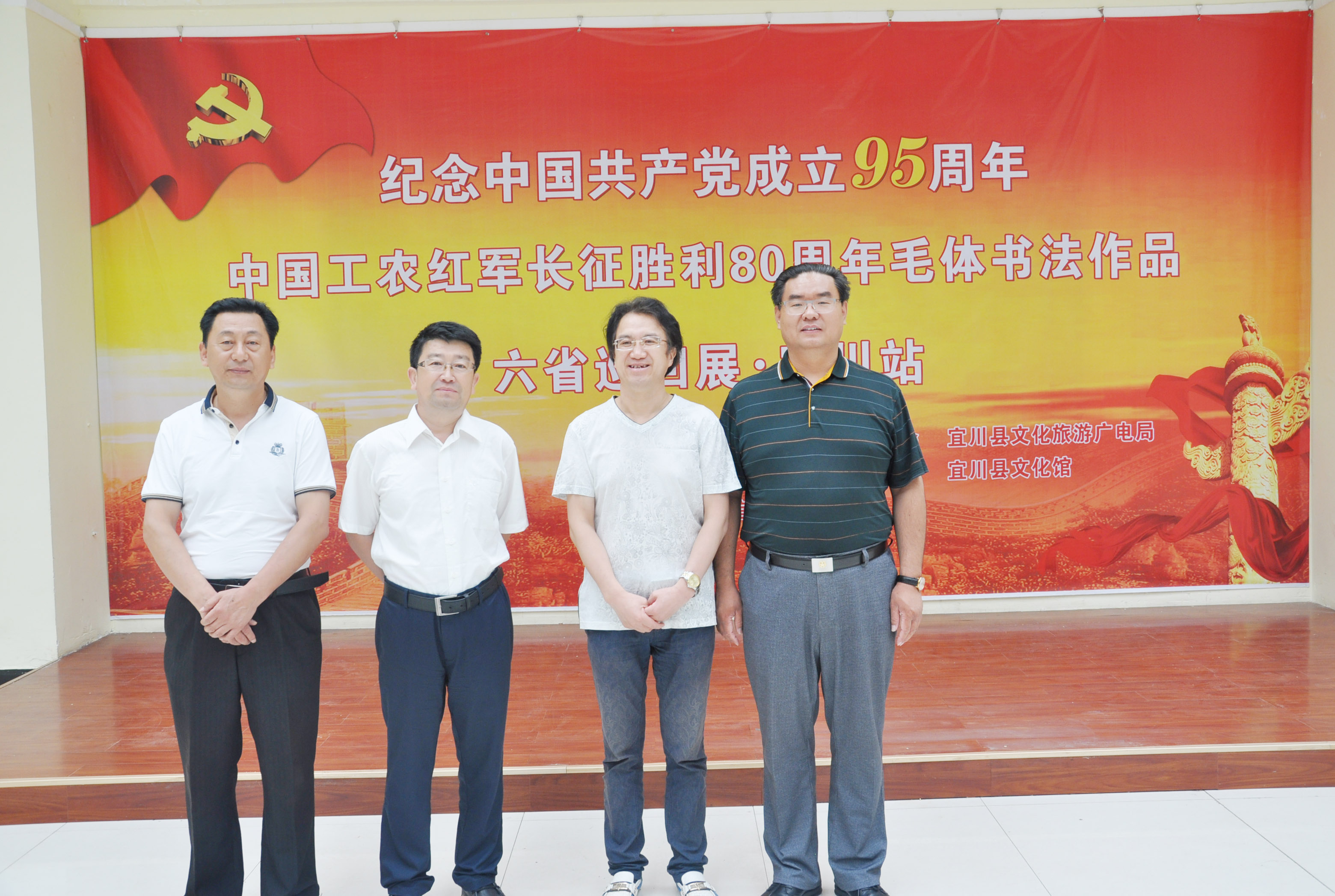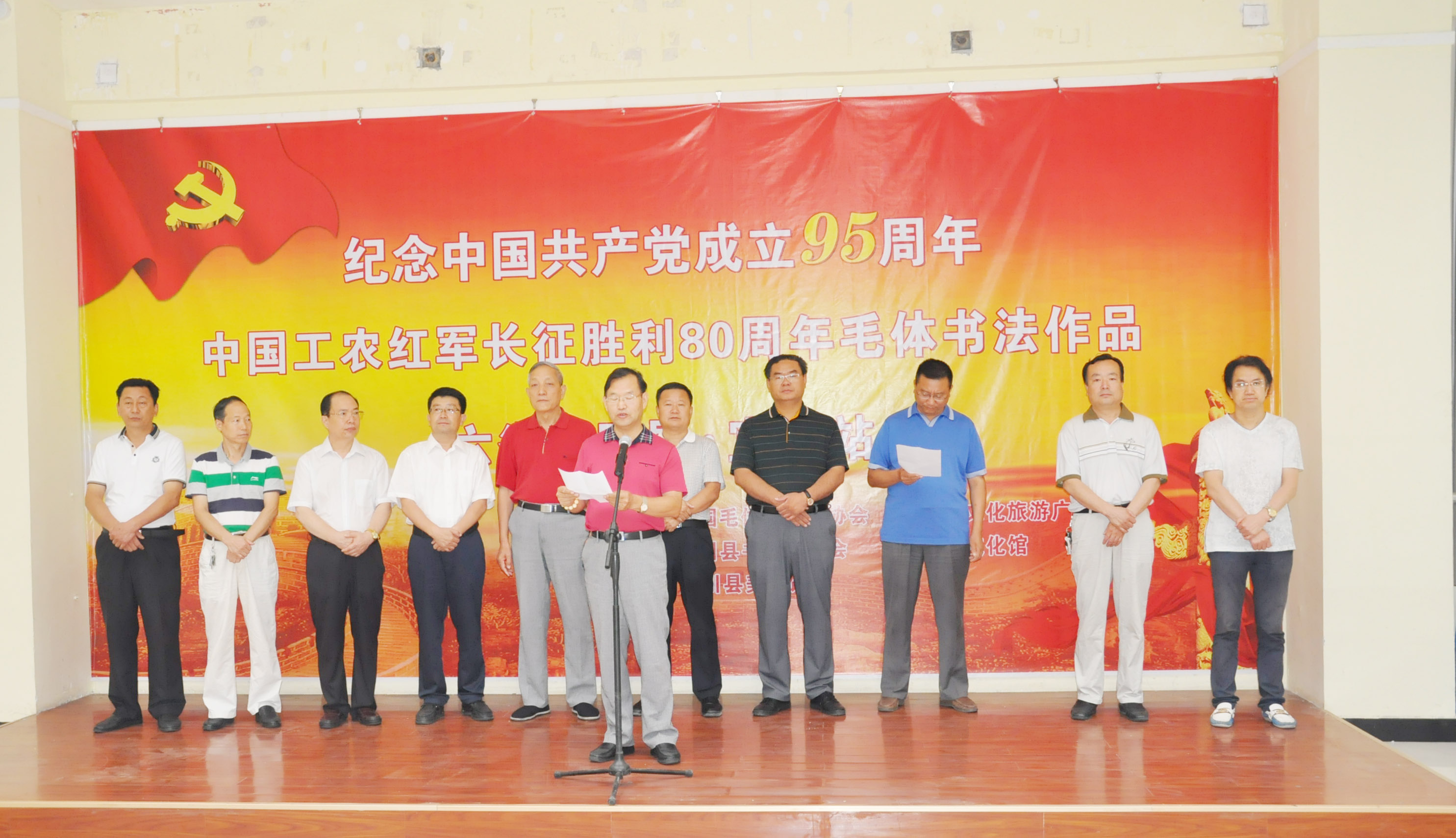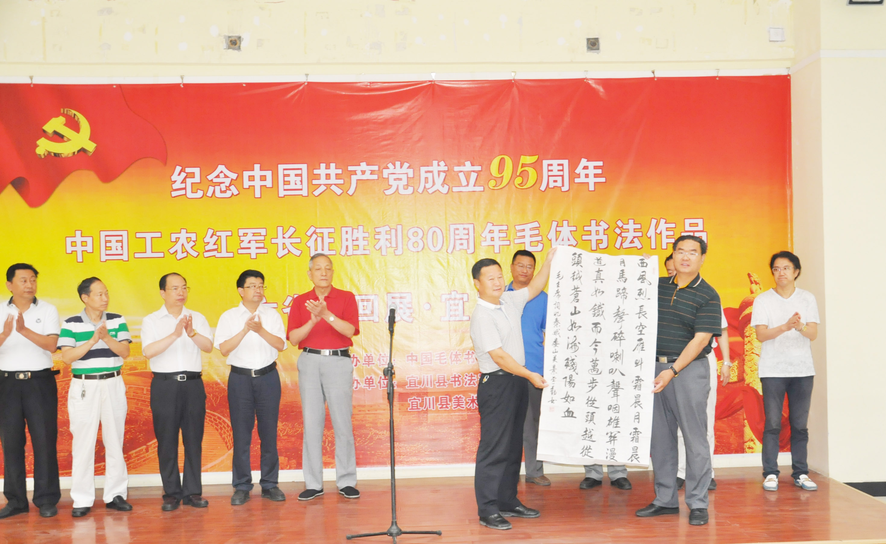 纪念中国共产党成立95周年 中国工农红军长征胜利80周年 2016年7月20日上午,由中国毛体书法家协会、宜川县文化旅游广电局主办,宜川县书法家协会、宜川县文化馆、宜川县美术馆承办的“纪念中国共产党成立95周年 中国工农红军长征胜利80周年毛体书法作品六省巡回展”在这历史悠久的宜川县文化馆开幕了。 中国毛体书法家协会顾问陈启军;中国毛体书法家协会副会长、空军一基地原政委姚二峰;中国毛体书法家协会副会长、兴和县副县长张隽平;中国毛体书法家协会副会长孔维阳(兼秘书长)、赵恩海;中国毛体书法家协会常务理事武法村;中国毛体书法家协会理事、西安红色书画创作基地主任戴德民;宜川县县委常委、宣传部长王长江;宜川县文化旅游广电局局长王思宣;宜川县文化馆馆长曹晓江;宜川县美术馆馆长陈雷鸣及各界人士出席了开幕仪式。 活动由宜川县文化旅游广电局局长王思宣主持,宜川县县委常委、宣传部长王长江致欢迎辞;中国毛体书法家协会副会长、空军一基地原政委姚二峰讲话;中国毛体书法家协会副会长兼秘书长孔维阳向宜川县赠送景学勤将军书法作品;宜川县县委常委、宣传部长王长江宣布“纪念中国共产党成立95周年、中国工农红军长征胜利80周年毛体书法作品六省巡回展宜川展”开幕。 王长江部长在致辞中说:“我代表宜川县委、县政府和全县老区人民,对前来参加活动的中国毛体书法家协会领导、嘉宾和书法家表示热烈欢迎,对本次书法展的成功举办表示热烈祝贺! 众所周知,毛泽东书法已经成为我国人民心目中的一座艺术丰碑,在中国书法史上为后人留下了一笔宝贵的财富,希望我们通过此次展览能够教育一代又一代人把这笔遗产传下去,不忘历史,永远前进! 我们党在95年波澜壮阔的历史进程中,中国共产党紧紧依靠人民,跨过一道又一道沟坎,取得一个又一个胜利,为中华民族作出了伟大历史贡献。我们不能忘记走过的路;走得再远、走到再光辉的未来,也不能忘记走过的过去,不能忘记为什么出发。希望通过这次毛体书法展,能够重温党的光辉历史,铭记党的光荣传统,重新学习毛泽东思想的精髓。为毛泽东思想的进一步传播做出应有的贡献。” 姚二峰副会长在讲话中说:“为了隆重庆祝中国共产党成立95周年、红军长征胜利80周年,我们来到了历史悠久的宜川县,举办毛体书法作品展,缅怀一代伟人和先烈,传承民族文化和红色文化,为我们伟大的党献上一份厚礼,这是我们的荣幸!作为一名党员我感到非常自豪。 宜川县位于黄河中游,历史悠久,这里有黄河文化的沉淀,著名的壶口瀑布景观坐落在此。1991年,壶口瀑布被评全国旅游胜地‘四十佳’之一。景区内景点星罗棋布,有孟门月夜、镇河神牛、旱地行船、清代长城、明清码头、梳妆台、古炮台、克难坡等自然和人文景观,让世人向往。 我们党已经走过了95年的历程,但我们要永远保持建党时中国共产党人的奋斗精神,永远保持对人民的赤子之心。一切向前走,都不能忘记走过的路;走得再远、走到再光辉的未来,也不能忘记走过的过去,不能忘记为什么出发。面向未来,面对挑战,我们一定要不忘初心、继续前进。 历史告诉我们,95年来,中国走过的历程,中国人民和中华民族走过的历程,是中国共产党和中国人民用鲜血、汗水、泪水写就的,充满着苦难和辉煌、曲折和胜利、付出和收获,这是中华民族发展史上不能忘却、不容否定的壮丽篇章,也是中国人民和中华民族继往开来、奋勇前进的现实基础。 文化自信,是更基础、更广泛、更深厚的自信。在5000多年文明发展中孕育的中华优秀传统文化,在党和人民伟大斗争中孕育的革命文化和社会主义先进文化,积淀着中华民族最深层的精神追求,代表着中华民族独特的精神标识。我们要弘扬社会主义核心价值观,弘扬以爱国主义为核心的民族精神和以改革创新为核心的时代精神,不断增强全党全国各族人民的精神力量。 我相信,这次毛体书法作品展的成功举办,不仅能使我们铭记历史,而且能进一步增强实现中华民族伟大复兴的责任感与使命感,也将促进书画爱好者之间交流与合作,对于进一步提高我们的书画艺术创作整体水平,活跃文化艺术生活,促进文化艺术的繁荣与发展,必将起到积极的促进作用。 本次书法展展出122幅书法作品,内容以毛主席诗词、题词和警句为主,为毛泽东思想的传播起到了积极作用。请宜川县的书法同仁,提出批评指导。感谢宜川县委、县政府、县文化旅游广电局、县书法家协会、县文化馆和美术馆对中国毛体书法家协会工作的支持,感谢工作人员的辛勤劳动。祝宜川县人民身体健康、工作进步。” 开幕仪式结束后,来宾一起参观了黄河壶口瀑布和第二战区司令长官部秋林旧址陈列馆等景观。