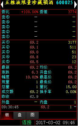 - 新股行情火爆 五粮液·限量珍藏·禛酒迎来四连涨2017-03-02 02:03:22