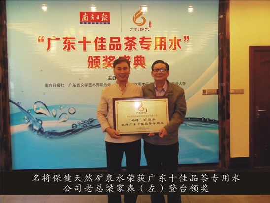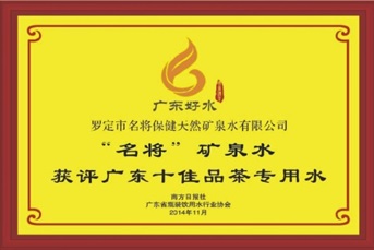 名将矿泉水水源地坐落在粤西山区美丽的云浮罗定市榃滨镇,这里是誉为广东十宝之一的肉桂之乡,方圆数十多公里无任何工业污染,四周高山环抱之中,景色怡人,空气清新,泉水从岩层深处涌泉溢出,水质清沏甘甜,常年出水量恒定不变,雨季不增、大旱不枯,四季水温都保持在23-24度,是我国谨有不多的深层自涌可直接饮用的大好矿泉水。每天自涌水量近千立方。 名将矿泉水经广东省地质局反复勘探、严格检验证明该矿泉的地质情况属华力西期混合花岗岩类,地下水的补给源充足。经过加里东至喜马拉雅历次构造运动、矿区内断裂构造发育有利于地下水的补给。裂缝潜水分布广泛为水的循环提供了通道,在地下滞留的时间较长。因此该矿泉的水源是滴滴流经十几年以上岩层渗透过滤,天然净化后再自涌上升到地面,岩中蛙化普遍,水中溶解的矿物质相对较多,尤其是岩含量丰富的可溶性SiO2较高,有的形成偏硅酸矿泉水。属低钠重碳酸钙鎂型偏硅酸淡矿泉水,含有锌、碘、硒等多种有益于人体健康的微量元素,pH值为7.77,属弱碱性 名将矿泉水的水质历年经国家级卫生部门的抽检化验,(证号:地环水发(1994)008号)是省内极少数自涌矿泉之一处。年年检验都达标合格。该矿泉水确认属珍贵矿泉水,入口甘甜清爽,经常饮用能补充体内消耗的矿物质。因此,经常饮用有益于健康。 名将品牌:我国的著名民主人士,爱国将领,抗日民族英雄蔡廷锴将军是出生于广东罗定市罗镜镇龙岩村。曾于1932年1月28日在上海蔡廷锴将军率领国民第十九路军抗击侵华日军,以少胜多,战败日军三易其帅,一战而名震中外。被称为一代名将。将军家乡罗定人民以此为荣,今名将矿泉承将军之威,名将矿泉水将再创辉煌。因此而得品牌名将矿泉 名将保健矿泉水有限公司成立于90年代,占地面积一万四千多平方米(包括水源地),建造了3000多平方米的现代化生产厂房,矿泉水是在洁净的生产环境下,用现代化的灌装设备和技术生产出18.9升桶装水和5L、530ml、370ml的小瓶装水,按照国家桶装瓶装饮用水标准严格把关生产,完全达到国家规定的饮用矿泉水指标,得到了QS认证。同时也得到了一些生产质量安全等的认证,其中有ISO22000等。 名将保健矿泉水有限公司是广东省瓶装饮用水行业协会的会员,一直以来都得到协会的大力支持和方方面面的关心,令到名将在行业的资源中得到共享,对企业的发展给予了极大的帮助。相信在大家一起的努力下,这有益于人体健康的天然饮用矿泉水定能与广大消费者共同分享。同时被广东省再就业与创业发展促进会校企联合就业创业领袖峰会的指定饮用水,2017善美之星形象大使选拔大赛新闻发布会暨签约仪式举行的指定饮用水。